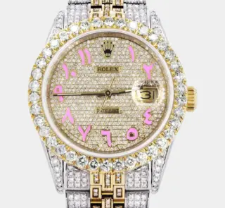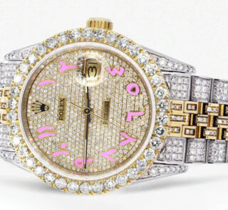 500,00 $ – 1.600,00 $Iced Out Rolex Datejust 36 MM | Two Tone | 10 Carats of Diamonds | Full Diamond Pink Arabic Dial Replik