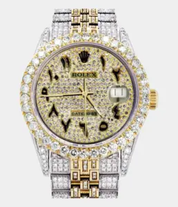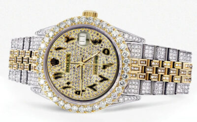 500,00 $ – 1.600,00 $Iced Out Rolex Datejust 36 MM | Two Tone | 10 Carats of Diamonds | Full Diamond Arabic Diamond Dial Replik