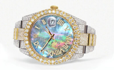500,00 $ – 1.600,00 $Diamond Iced Out Rolex Datejust 41 | 25 Carats Of Diamonds | Abalone Mother Of Pearl Dial | Two Tone | Two Row | Oyster Band Replik