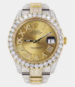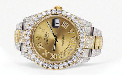 500,00 $ – 1.600,00 $Diamond Iced Out Rolex Datejust 41 | 25 Carats Of Diamonds | Custom Gold Roman Numeral Diamond Dial | Two Tone | Oyster Band Replik