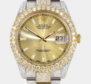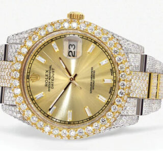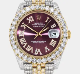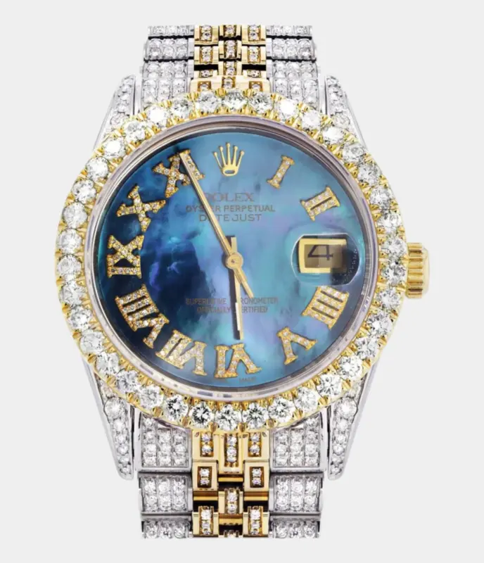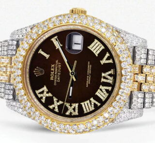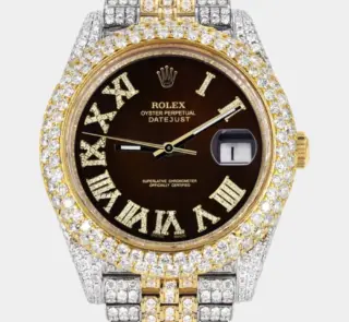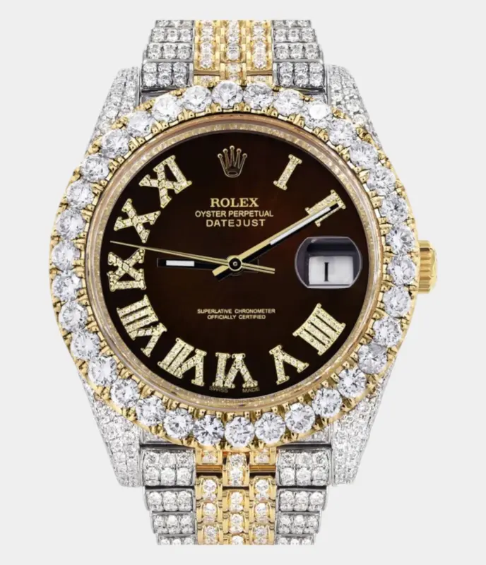 500,00 $ – 1.600,00 $Diamond Iced Out Rolex Datejust 41 | 25 Carats Of Diamonds | Custom Grey Roman Diamond Dial | Jubilee Band Replik