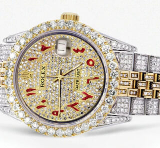500,00 $ – 1.600,00 $Iced Out Rolex Datejust 36 MM | Two Tone | 10 Carats of Diamonds | Full Diamond Red Arabic Dial Replik