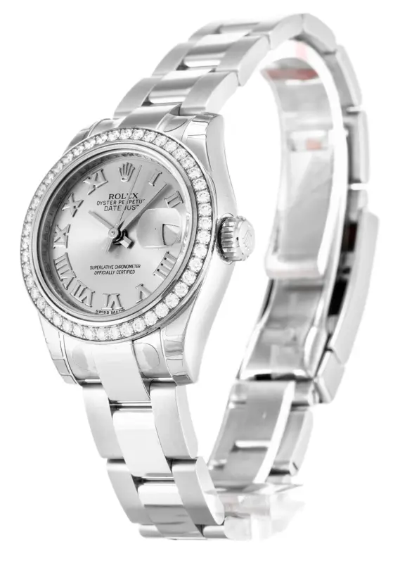 Die Rolex Lady-Datejust 179384 Replik verbindet feminine Eleganz mit luxuriösen Details wie diamantbesetzter Lünette, silbernem Zifferblatt und dem typischen 26 mm Gehäuse. Eine stilvolle Uhr für Damen mit höchsten Ansprüchen.
