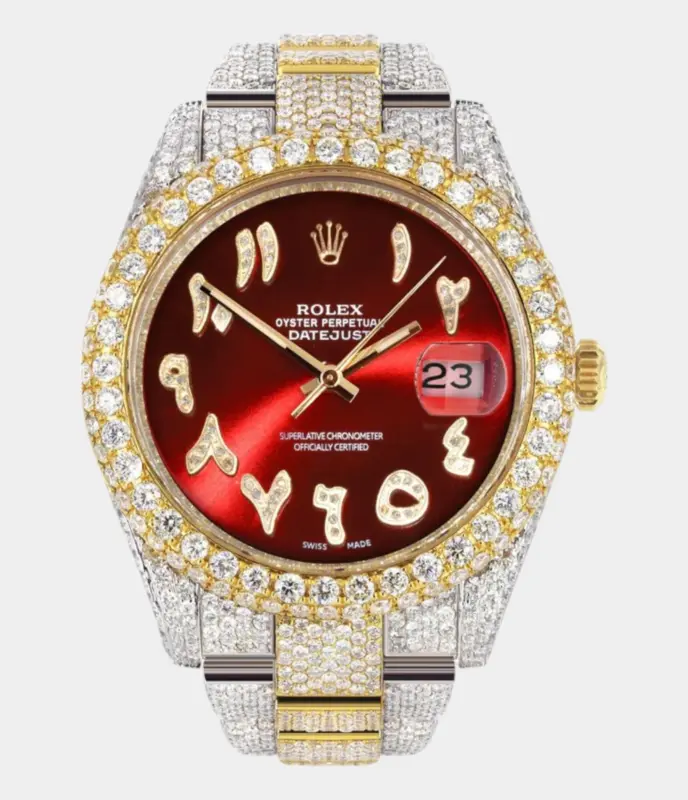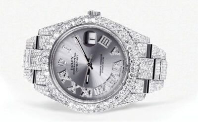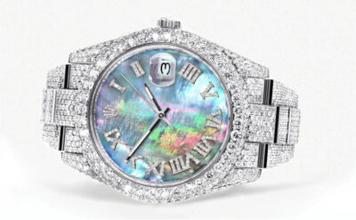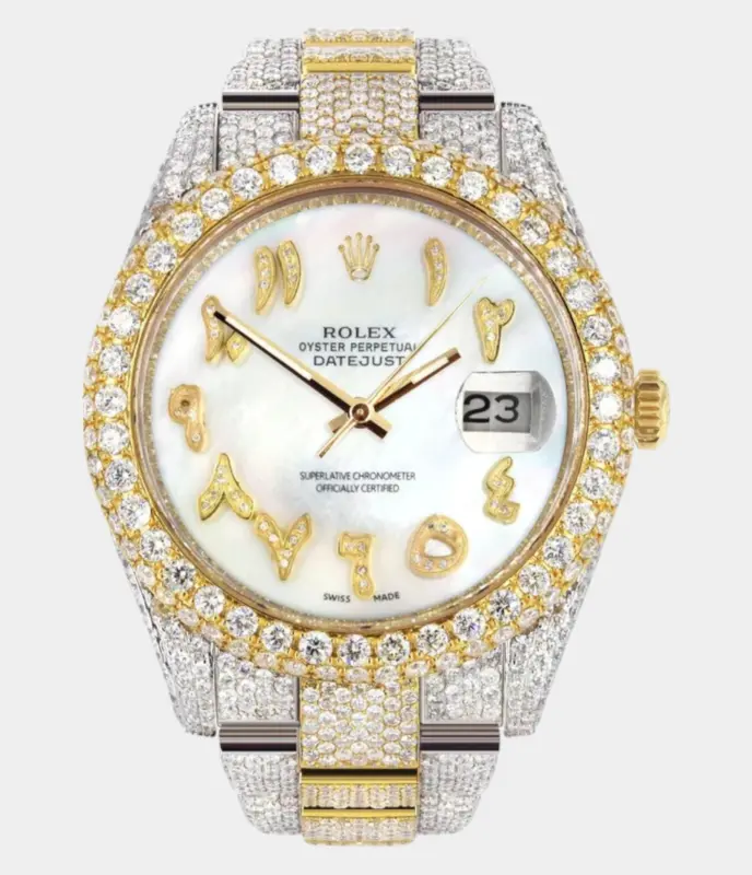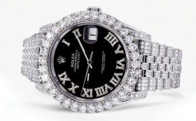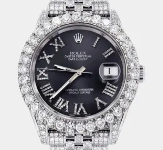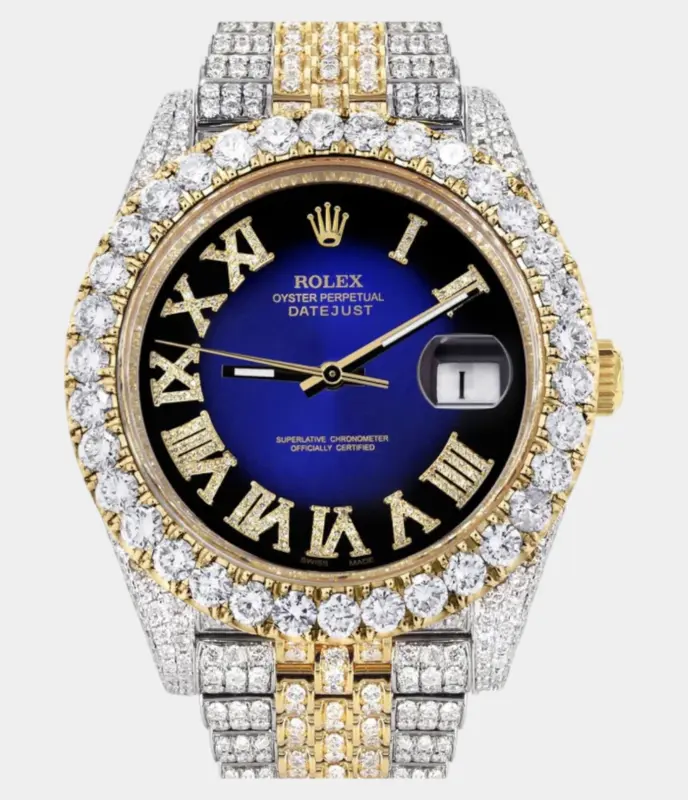 Diamond Iced Out Rolex Datejust 41 | 25 Carats Of Diamonds | Custom Blue Black Roman Numeral Diamond Dial | Two Tone | Jubilee Band Replik