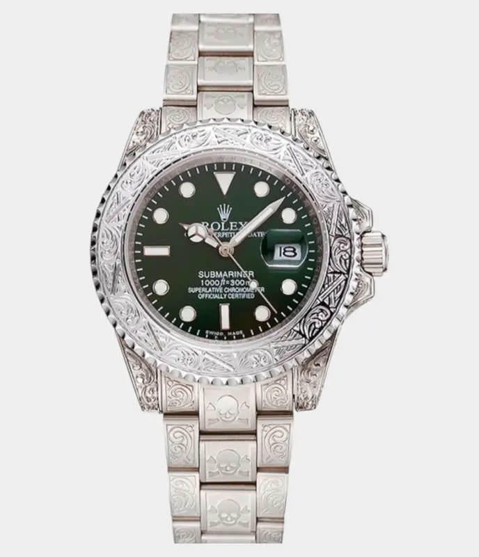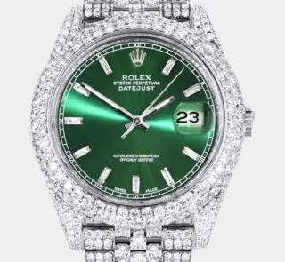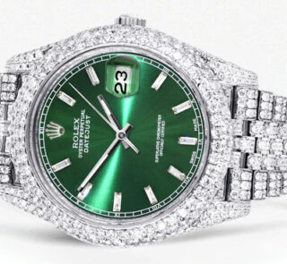 500,00 $ – 1.600,00 $Diamond Iced Out Rolex Datejust 41 | 25 Carats Of Diamonds | Custom Green Diamond Dial | Two Row | Jubilee Band Replik