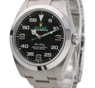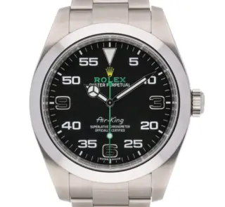500,00 $ – 1.600,00 $Rolex Air-King 116900 Oyster Perpetual Black Dial with Prominent Green Accents and Stainless Steel Bracelet Watch Replik