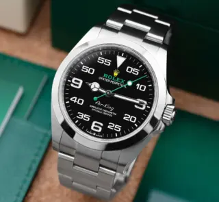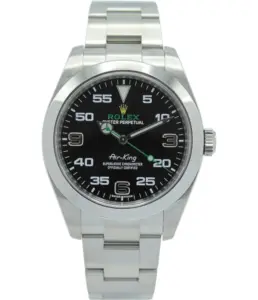 500,00 $ – 1.600,00 $Rolex Air-King 116900 Oyster Perpetual Black Dial with Green Seconds Hand and White Arabic Minute Markers Stainless Steel Watch Replik