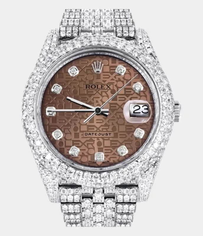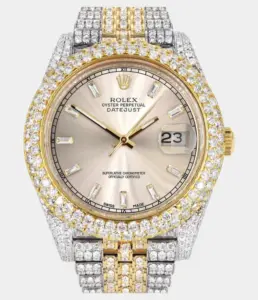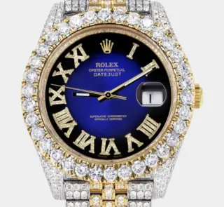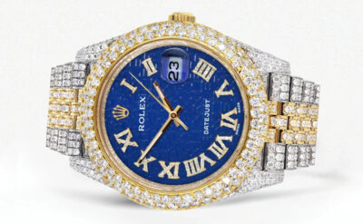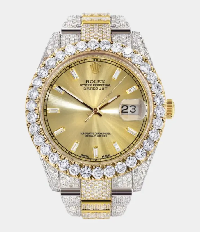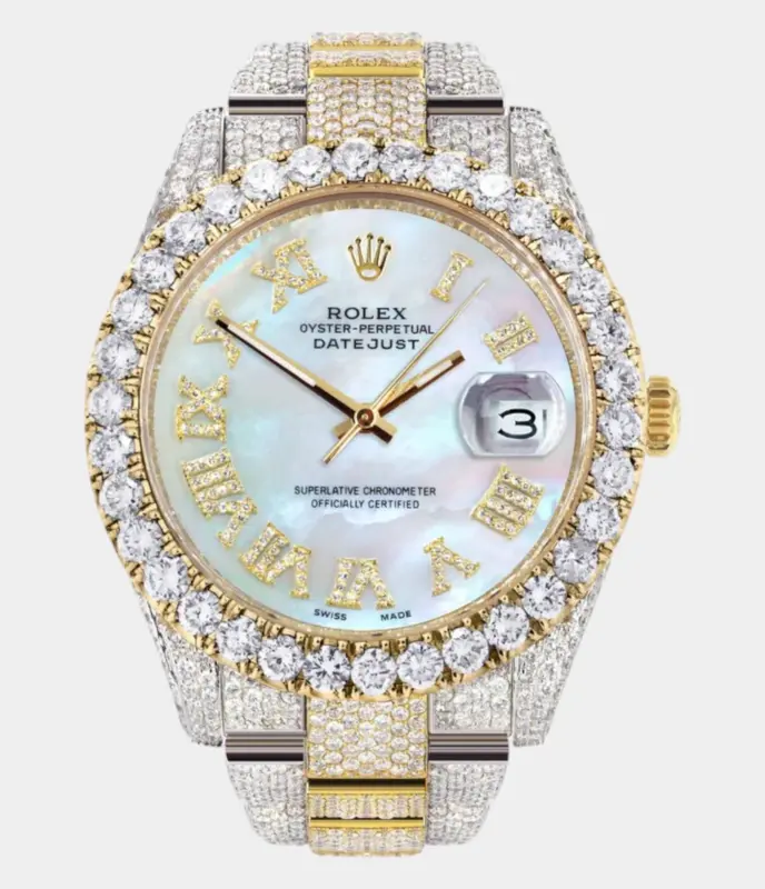 Diamond Iced Out Rolex Datejust 41 | 25 Carats Of Diamonds | Mother Of Pearl Dial | Two Tone | Oyster Band Replik