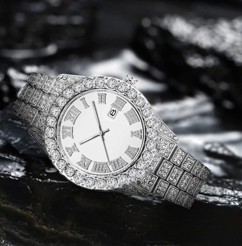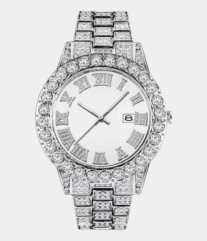 Iced-Out Diamond Watch – Silver with Crystal Rhinestone Analog Bracelet Wrist Replik