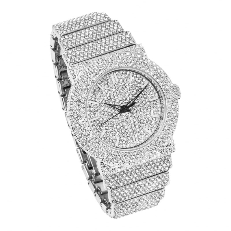 Women’s Elegant 40mm Fully Iced Out Diamond Watch, Quartz Movement – Silver Dial Replik