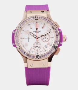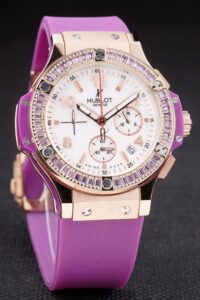500,00 $ – 1.600,00 $Hublot Big Bang Ure 4122 Rose Gold Case with Crystal Bezel, White Dial & Purple Rubber Strap Replik