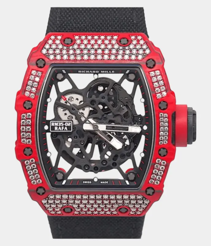 500,00 $ – 1.600,00 $Richard Mille RM 35-02 ‘Rafa’ Rafael Nadal Red Quartz TPT Diamond Set Watch Replik