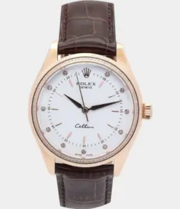 Die Rolex Daytona 116518 Replik mit goldfarbenem Zifferblatt und 40 mm Gehäuse verkörpert luxuriöse Sportlichkeit. Ihr Chronographendesign, kombiniert mit einem eleganten Lederarmband, macht sie zu einer exklusiven Wahl für anspruchsvolle Uhrenliebhaber.