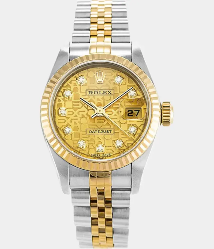 Die Rolex Datejust 79173 Replik vereint klassisches Design mit luxuriösem Goldton. Mit zweifarbiger Optik, goldfarbenem Zifferblatt und zuverlässigem Automatikuhrwerk ist sie ein zeitloser Klassiker für Damen mit Stil.