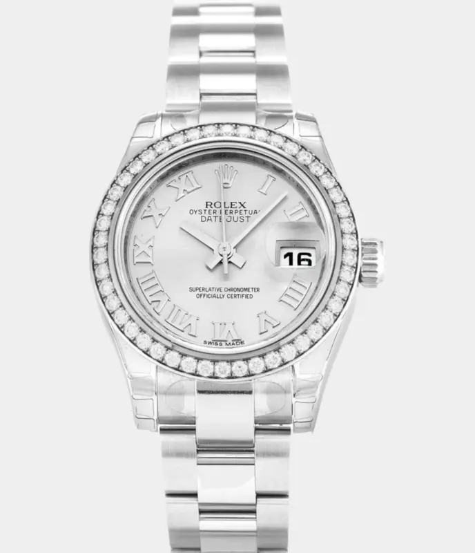 500,00 $ – 1.600,00 $Rolex Lady-Datejust 179384 Silver Dial Stainless Steel & White Gold Diamond Bezel Watch Replik