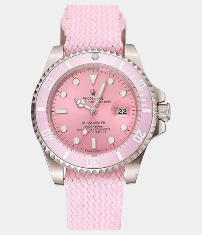 Die Rolex Submariner Replik mit 41 mm Gehäuse und seltenem pinkfarbenem Zifferblatt kombiniert sportliche Taucherästhetik mit ausdrucksstarkem Farbdesign. Eine auffällige Luxuswahl für Liebhaber besonderer Varianten.