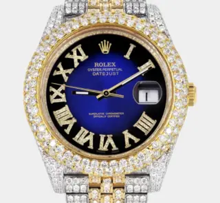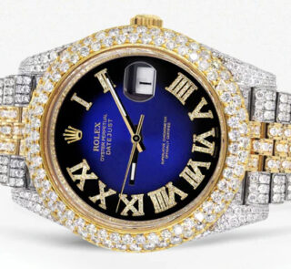 Diamond Iced Out Rolex Datejust 41 | 25 Carats Of Diamonds | Custom Blue Black Roman Numeral Diamond Dial | Two Tone | Two Row | Jubilee Band Replik