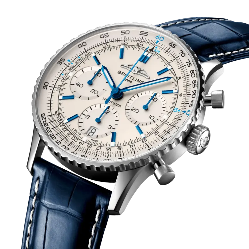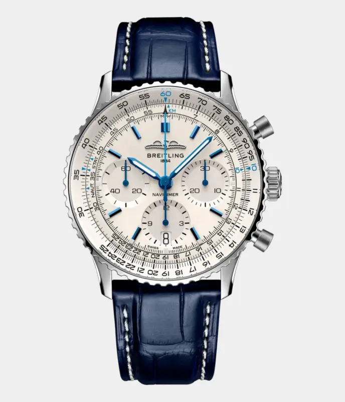 Breitling Navitimer B01 Chronograph 41 – Silver Dial with Blue Alligator Leather Strap Replik