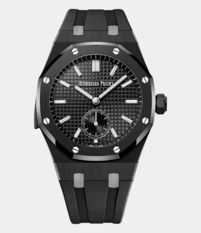 Diese Royal Oak Minute Repeater Supersonnerie Replik in schwarzer Keramik mit Baguette-Diamantzifferblatt ist ein Meisterwerk in Technik und Design. Ein ultra-luxuriöses Modell für Sammler mit höchsten Ansprüchen.