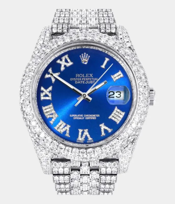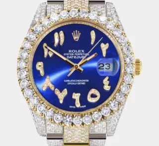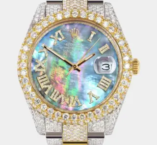 Diamond Iced Out Rolex Datejust 41 | 25 Carats Of Diamonds | Red Black Roman Numeral Dial | Two Tone | Two Row | Oyster Band Replik