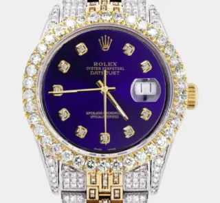 500,00 $ – 1.600,00 $Iced Out Rolex Datejust 36 MM | Two Tone | 10 Carats of Diamonds | Purple Diamond Dial Replik