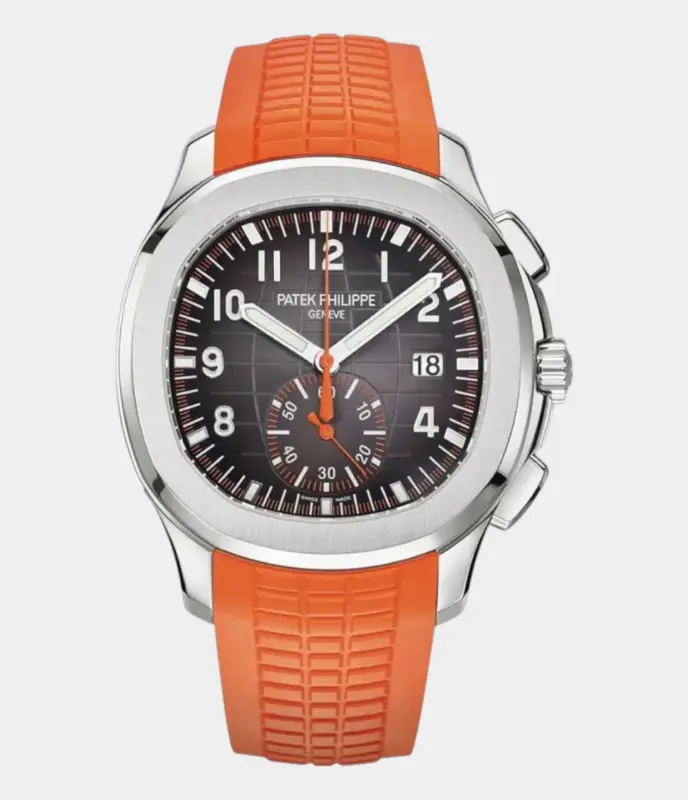 Patek Philippe Aquanaut Chronograph 42.2mm Watch – Black Dial, Stainless Steel Case Orange Polymer Rubber Strap Replik