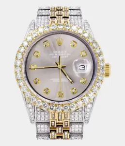 500,00 $ – 1.600,00 $Iced Out Rolex Datejust 36 MM | Two Tone | 10 Carats of Diamonds | Grey Diamond Dial Replik