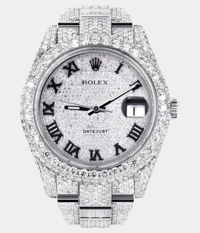 Diamond Iced Out Rolex Datejust 41 | 25 Carats Of Diamonds | Custom Blue Roman Numeral Diamond Dial | Two Row | Jubilee Band Replik