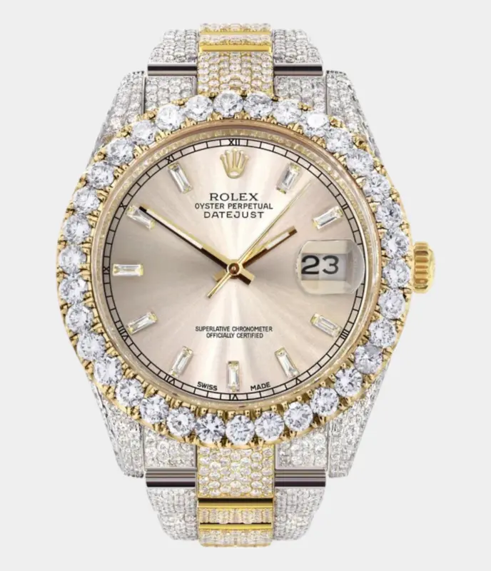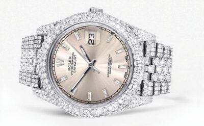 Diamond Iced Out Rolex Datejust 41 | 25 Carats Of Diamonds | Dawn Pink Diamond Dial | Two Tone | Oyster Band Replik