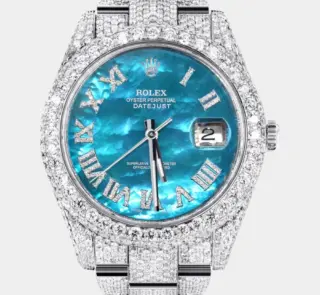 500,00 $ – 1.600,00 $Womens Diamond Iced Out Rolex Datejust 41 | 25 Carats Of Diamonds | Abalone Mother Of Pearl Dial | Two Row | Jubilee Band Replik