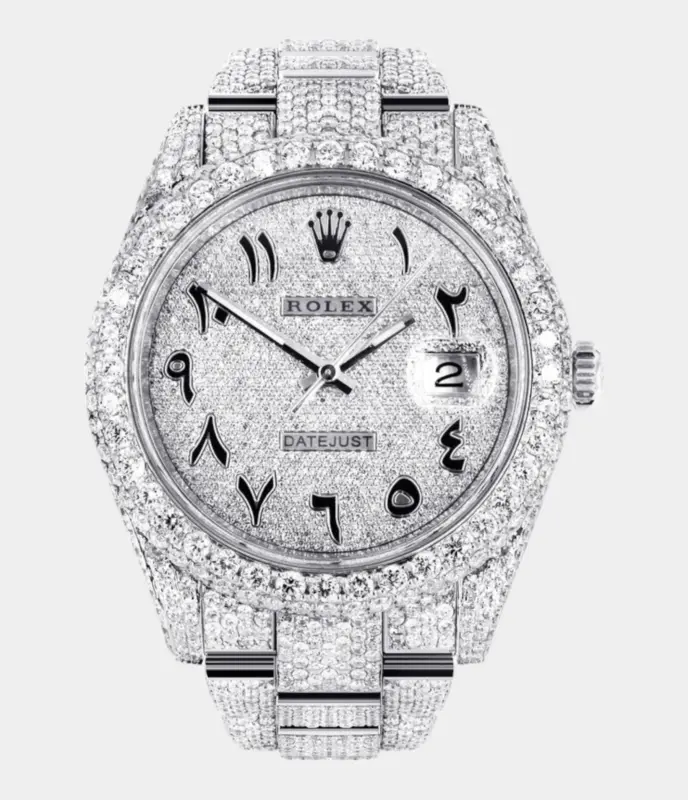 Womens Diamond Iced Out Rolex Datejust 41 | 25 Carats Of Diamonds | Custom Arabic Diamond Dial | Two Row | Oyster Band Replik