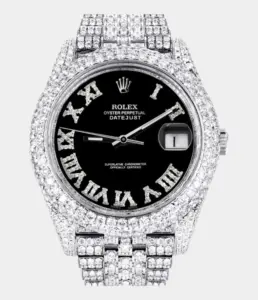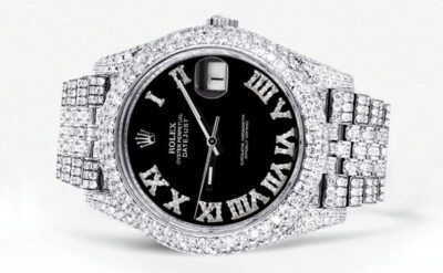 500,00 $ – 1.600,00 $Womens Diamond Iced Out Rolex Datejust 41 | 25 Carats Of Diamonds | Custom Black Roman Numeral Diamond Dial | Two Row | Jubilee Band Replik