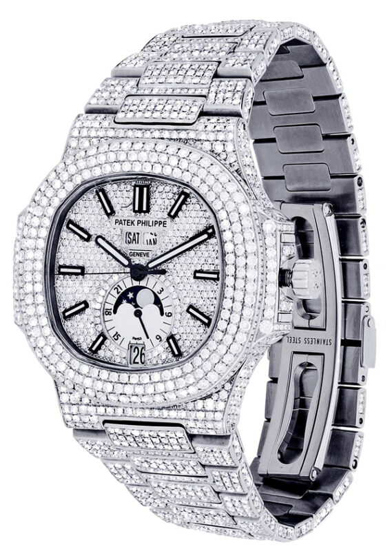 500,00 $ – 1.600,00 $Men’s Iced-Out Diamond Watch – Silver Green with Crystal Rhinestone Roman Numerals and Date Display Replik